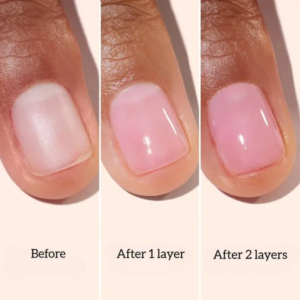 Rezultatas – momentinis rožinio švytėjimo efektas ir sveikai atrodantys nagai!